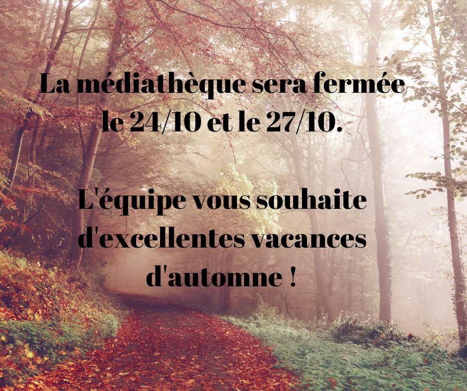 La médiathèque sera fermée le 24/10 et le 27/10.