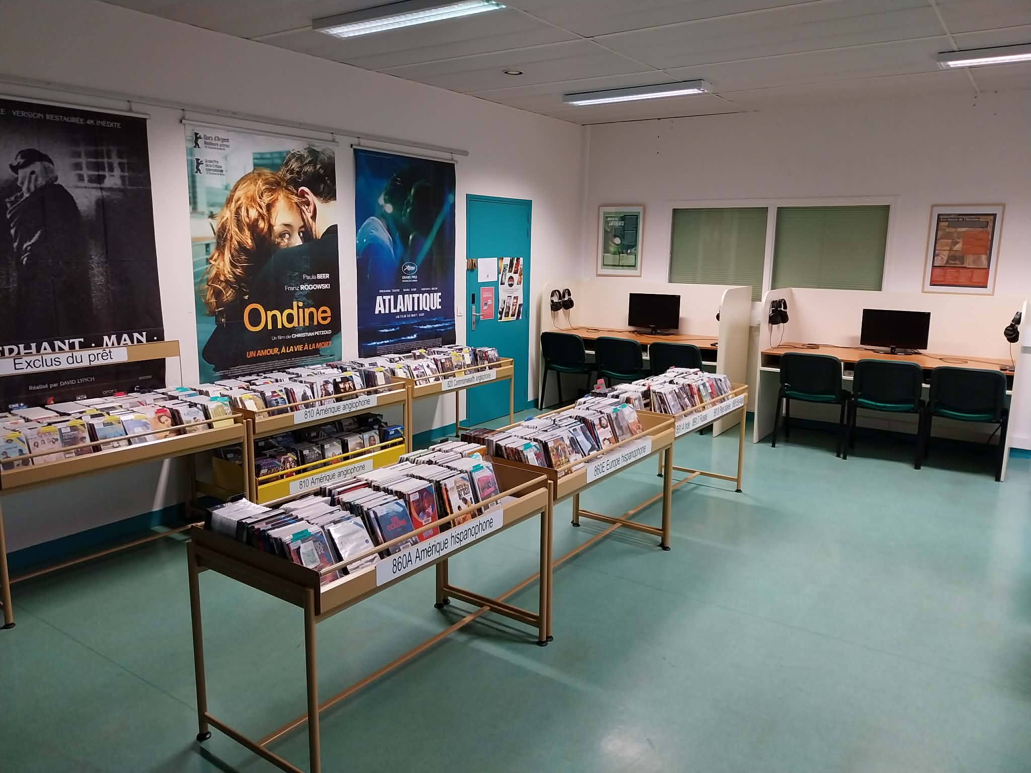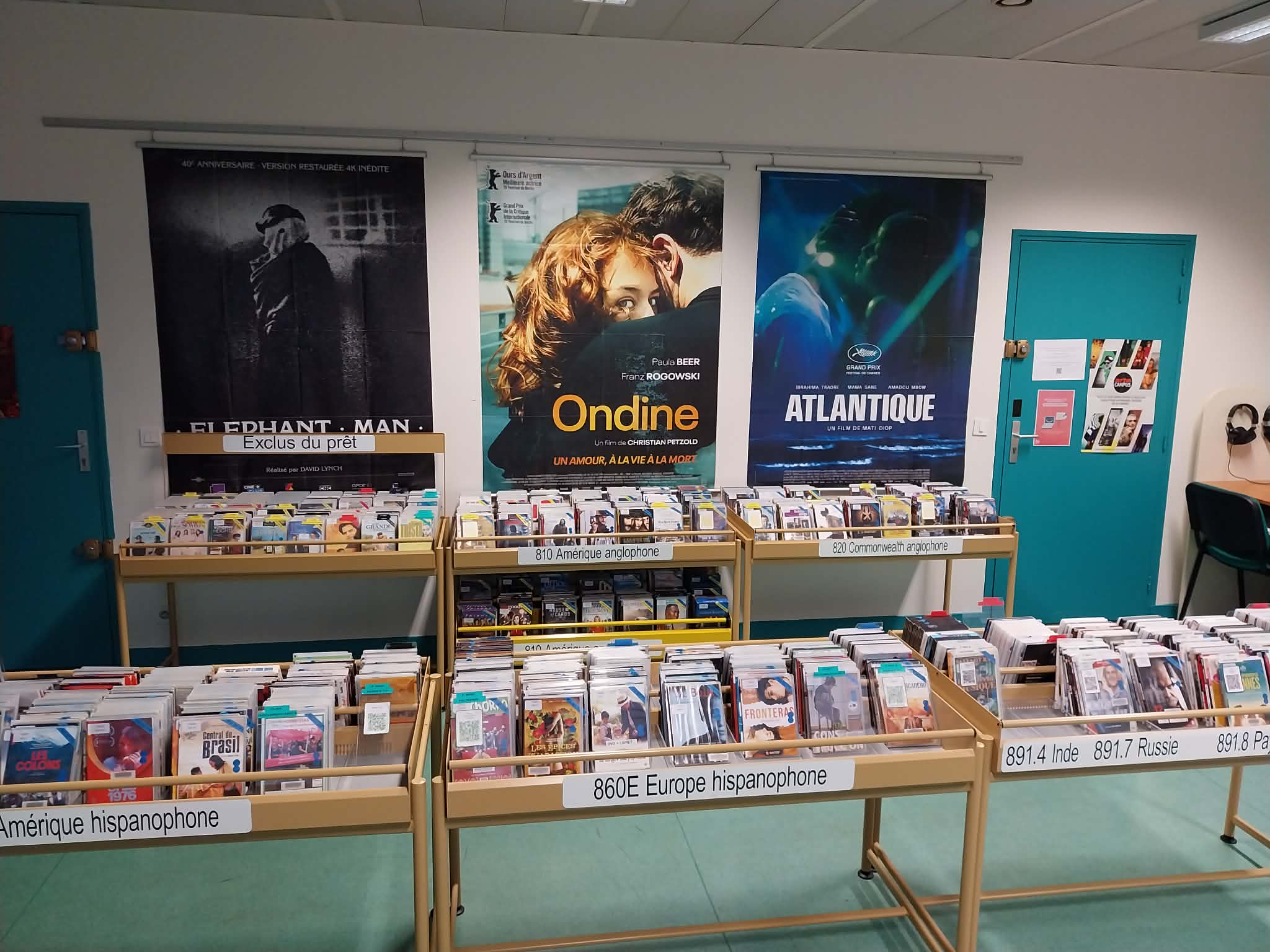 La médiathèque vous propose environ 1800 DVDs (fictions, documentaires, théâtre et séries télévisées) en différentes langues, à emprunter ou à consulter sur place. Pour trouver les titres disponibles à la médiathèque, rendez-vous sur la page dédiée. Les actualités (nouveautés, expositions, projections, fermetures, …) liées à la Médiathèque sont situées sur la page d’accueil de l’UFR Langues et Communication.